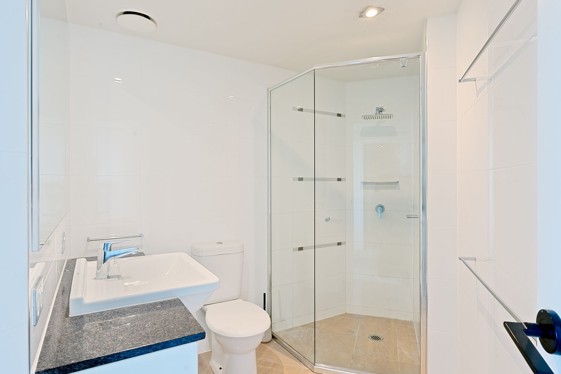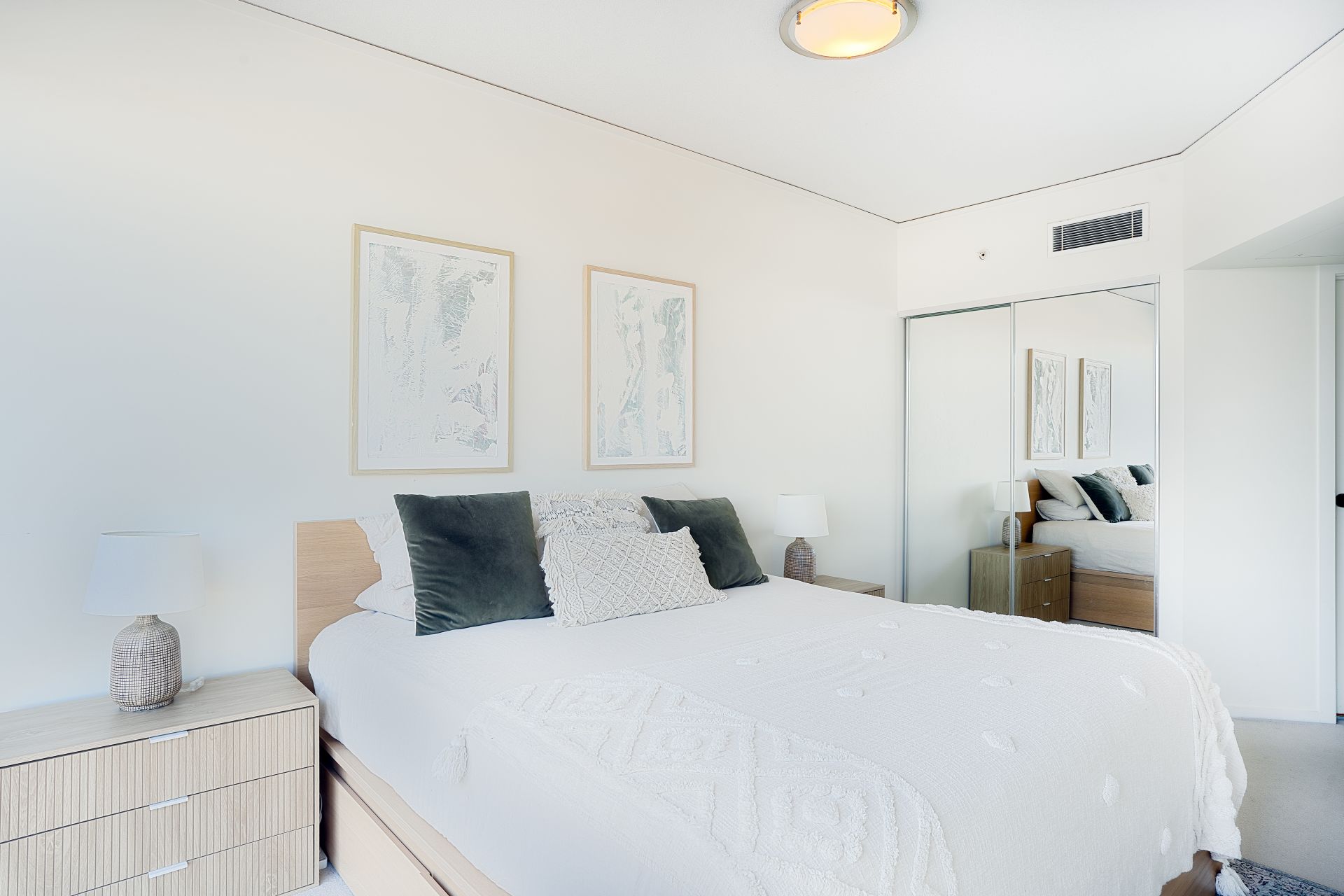 Both bedrooms are spacious and feature floor-to-ceiling windows, mirrored built-in robes, and their very own views over the city which are never to be built out. The master bedroom boasts the added luxury of an ensuite bathroom and not one but two built-in-robes.