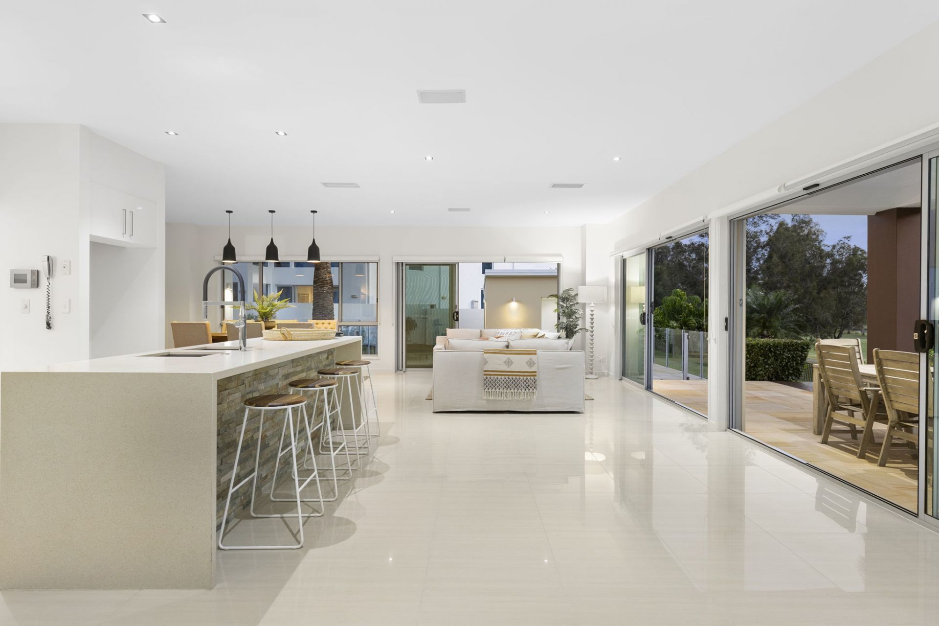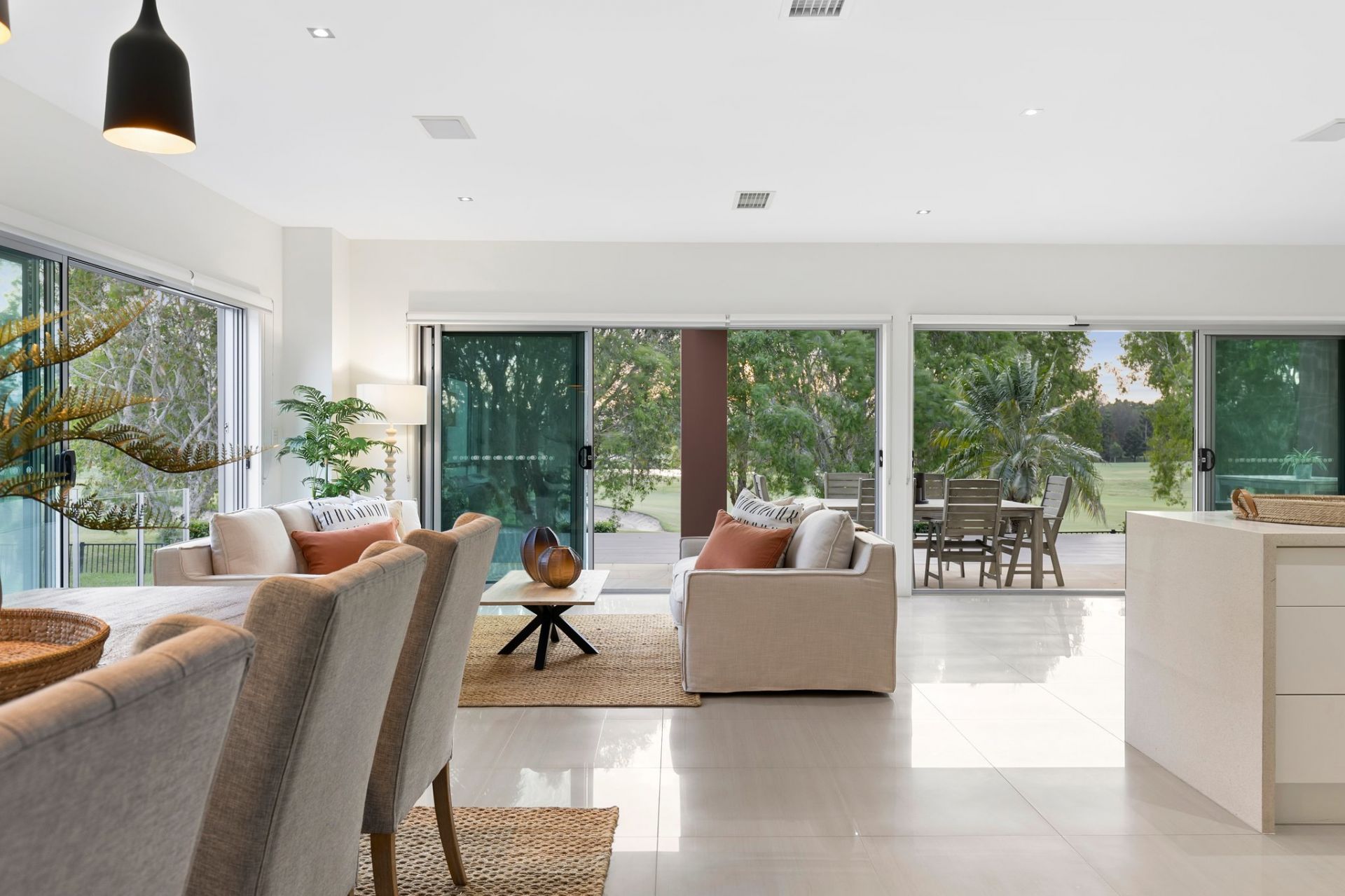 – Spacious open-plan living, dining, and meals areas.