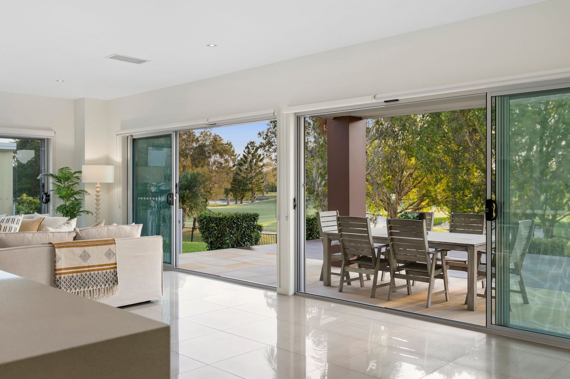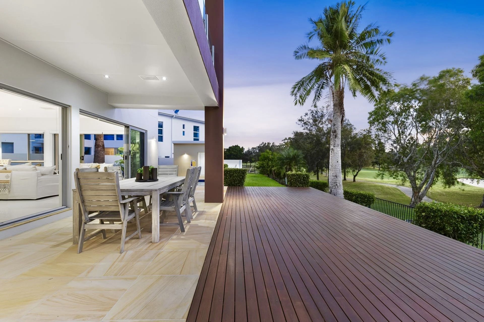 – Extensive timber entertainment deck with sweeping golf course views.