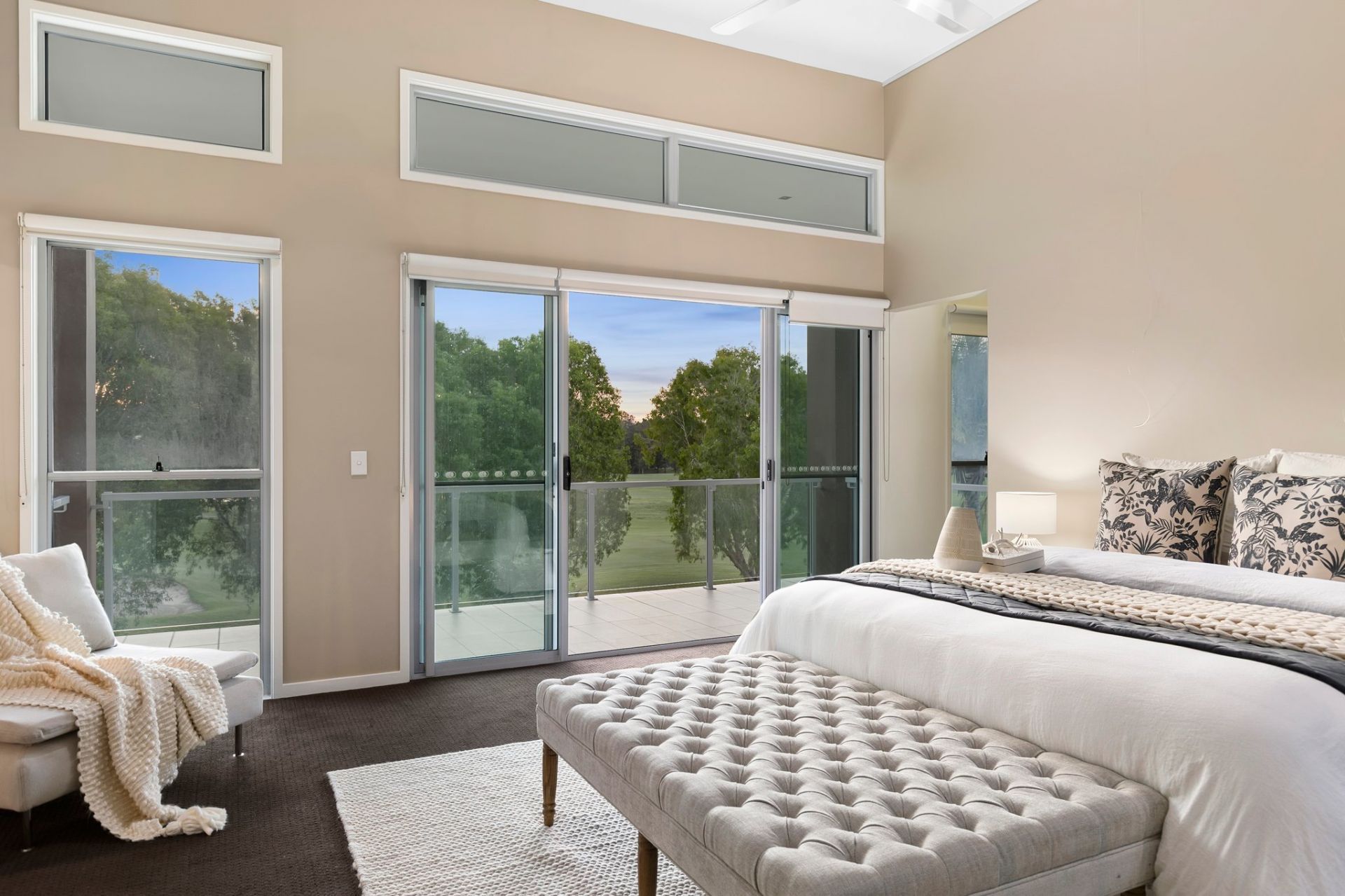 – Master suite with a private retreat, balcony overlooking the golf course, large ensuite, and walk-in robe.