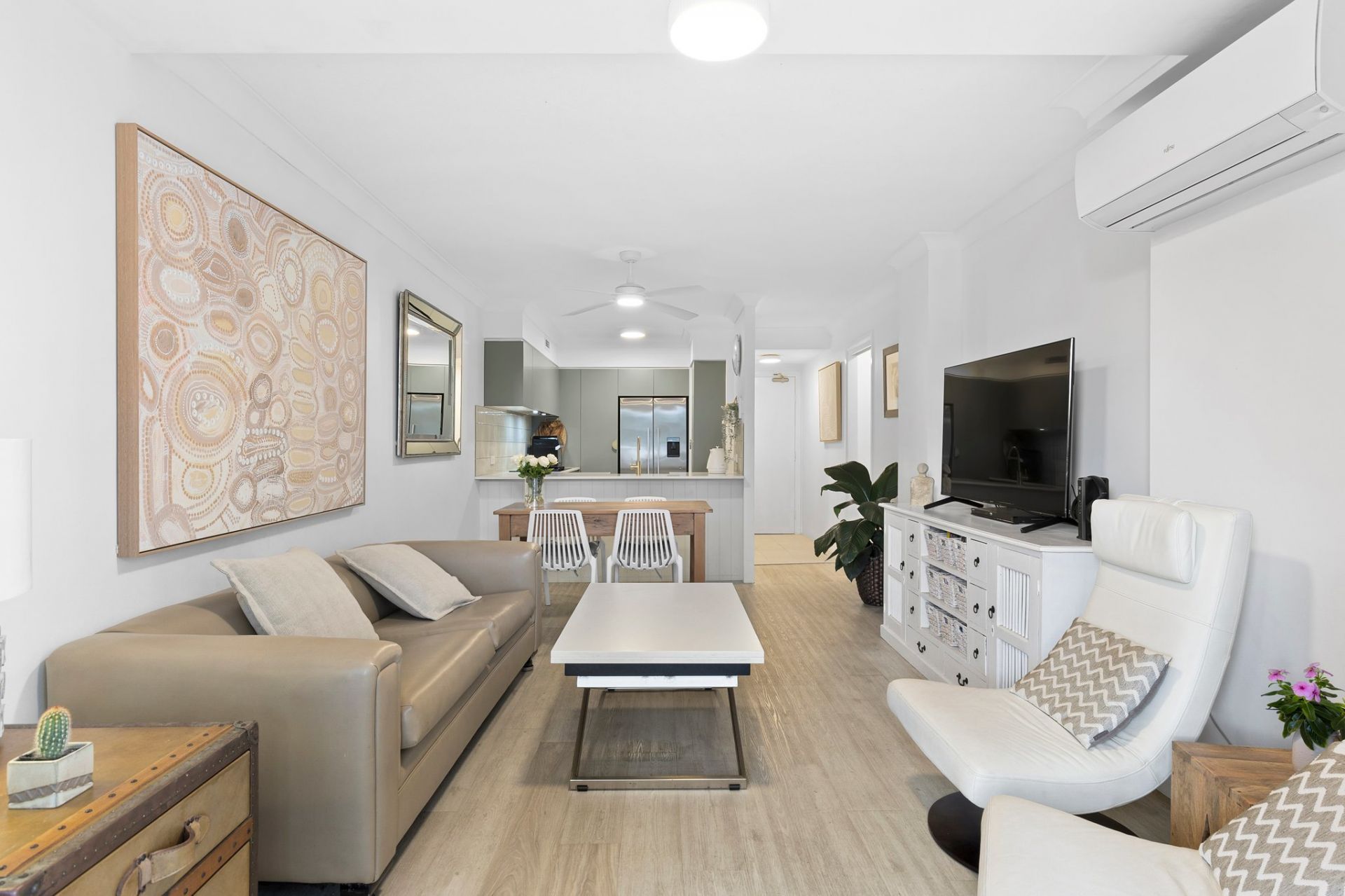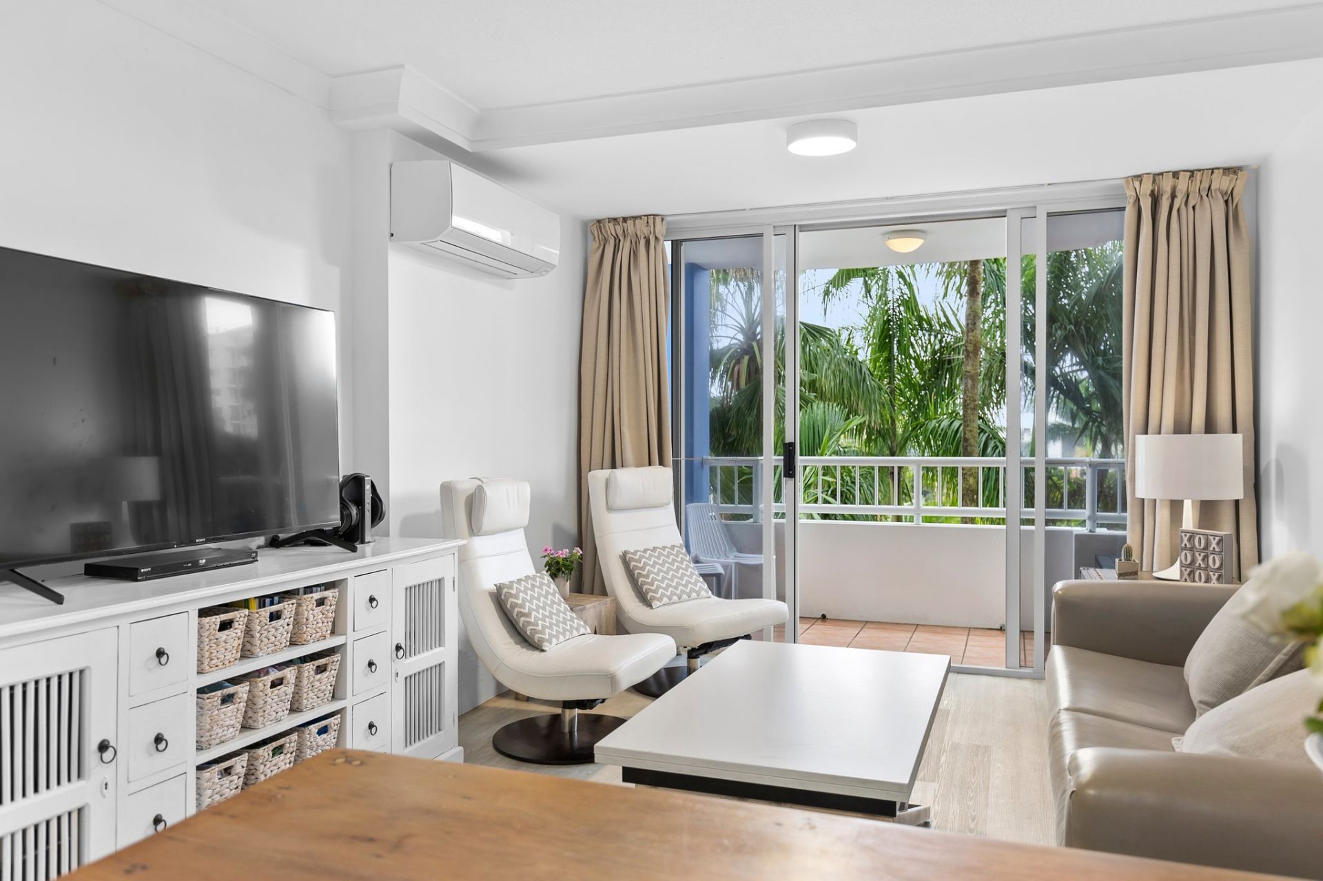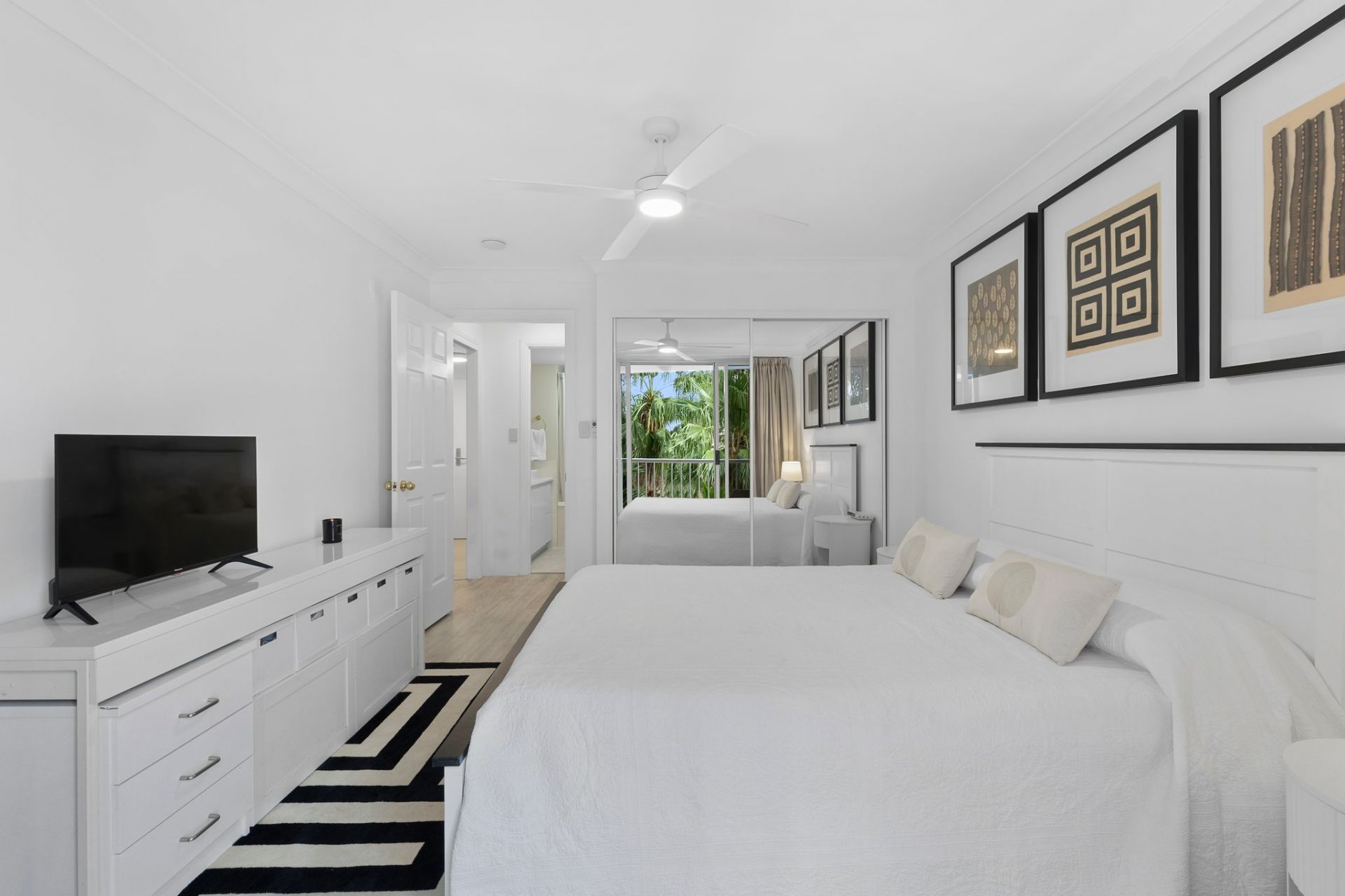 The inviting living area is generously sized and filled with natural light, creating a welcoming space for relaxation or entertaining. Step outside to your private balcony and take in peaceful tropical garden and pool views with a lovely sea breeze. A perfect spot for morning coffee or an evening unwinding.