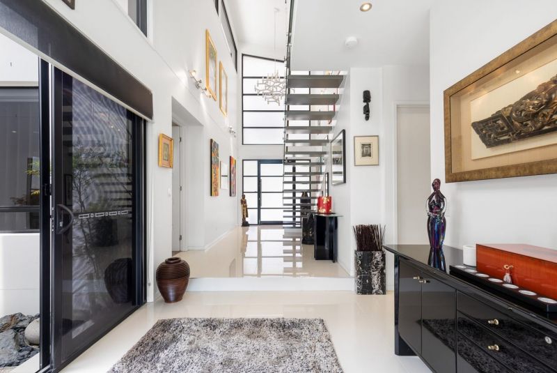 From the moment you arrive, you’re welcomed by a grand feature glass door, soaring ceilings, premium floor tiles, and an eye-catching glass and marine-grade steel staircase -setting the tone for what lies beyond.