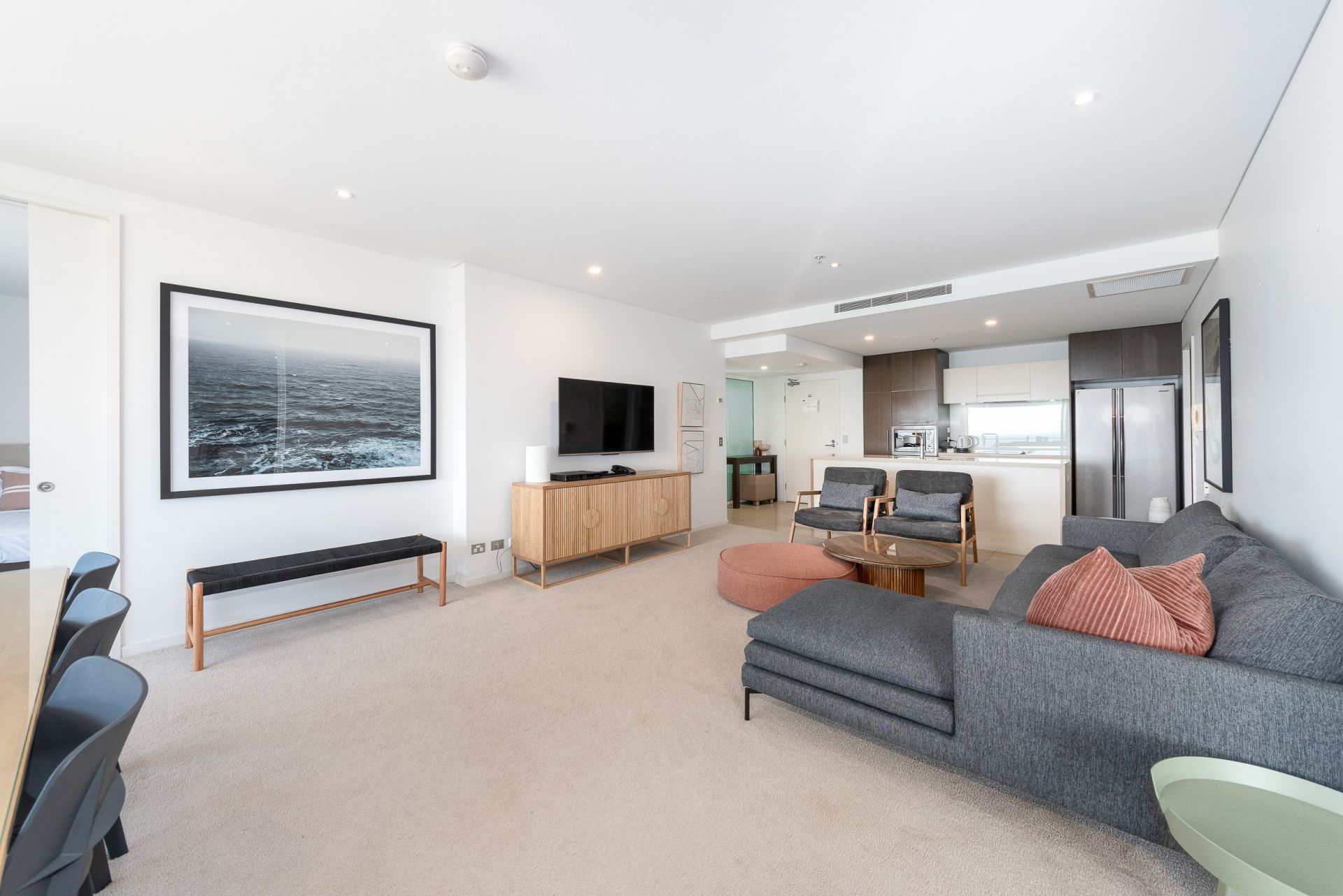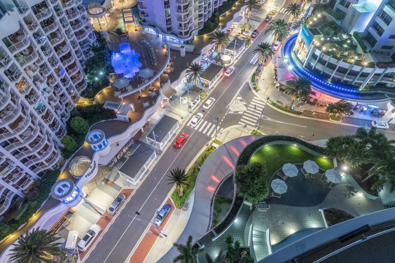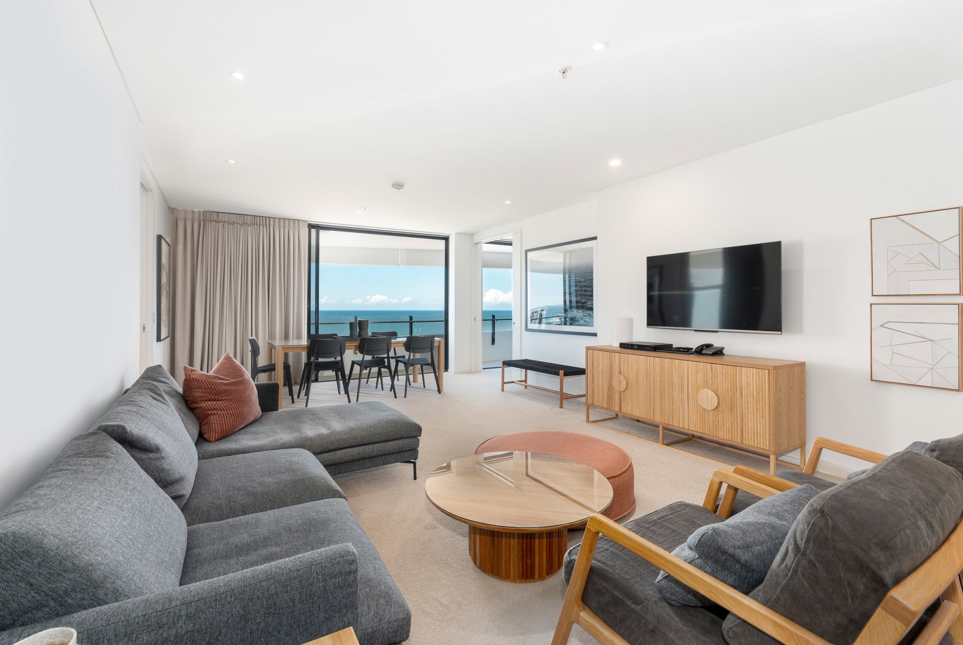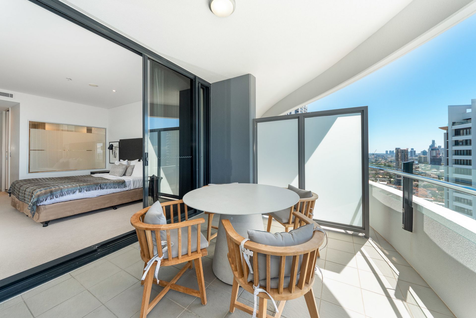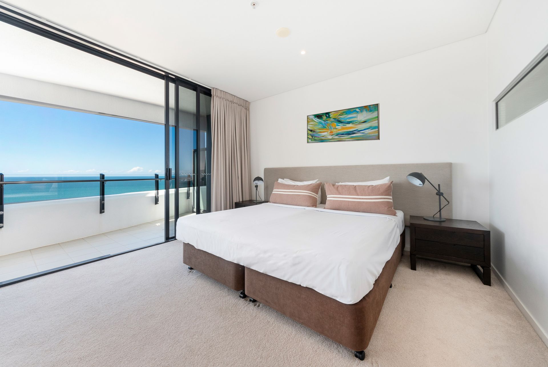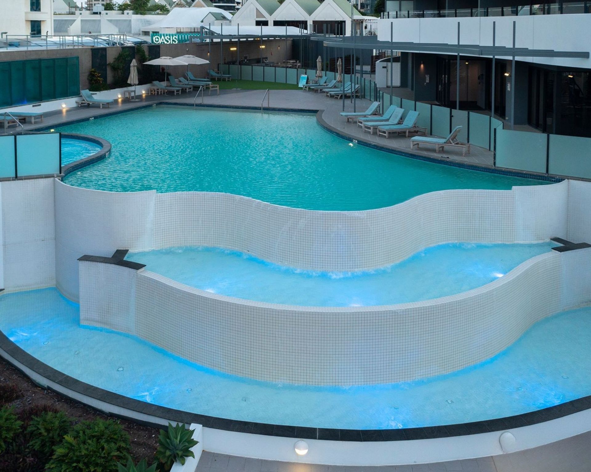 Roof top with views from Brisbane to NSW. Experience elevated coastal living at its finest in the iconic Wave – a multi-award-winning building celebrated for its wow factor facilities, striking design, premium build quality, and unbeatable lifestyle location. Positioned on level 23, elevated above the Niecon Plaza. This North East apartment offers panoramic vistas stretching from the ocean and protected Broadbeach Mall, capturing the best of both ocean views, and city sparkle.