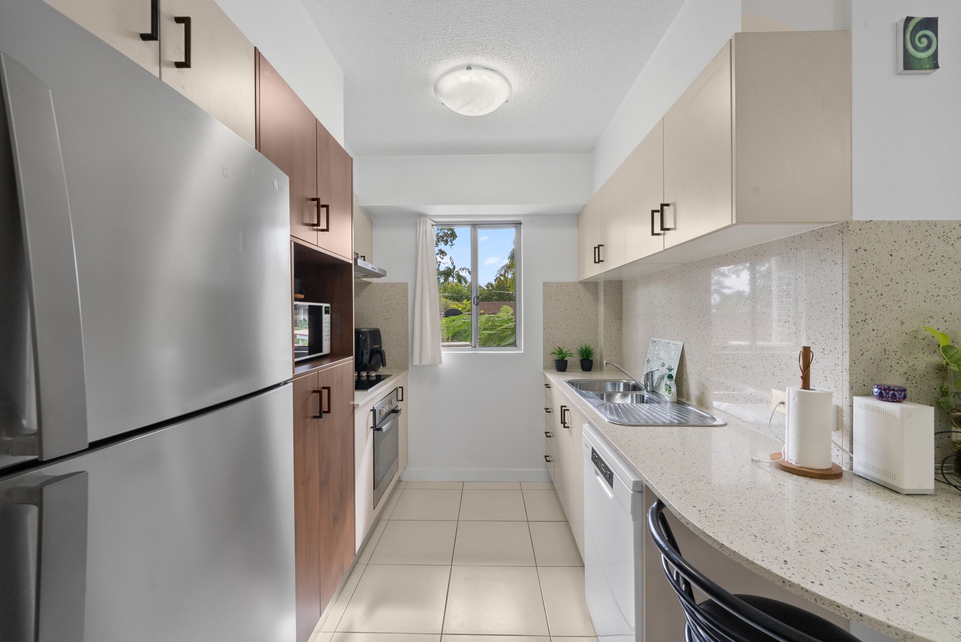 * Fully equipped kitchen with sleek stone bench tops and ample storage