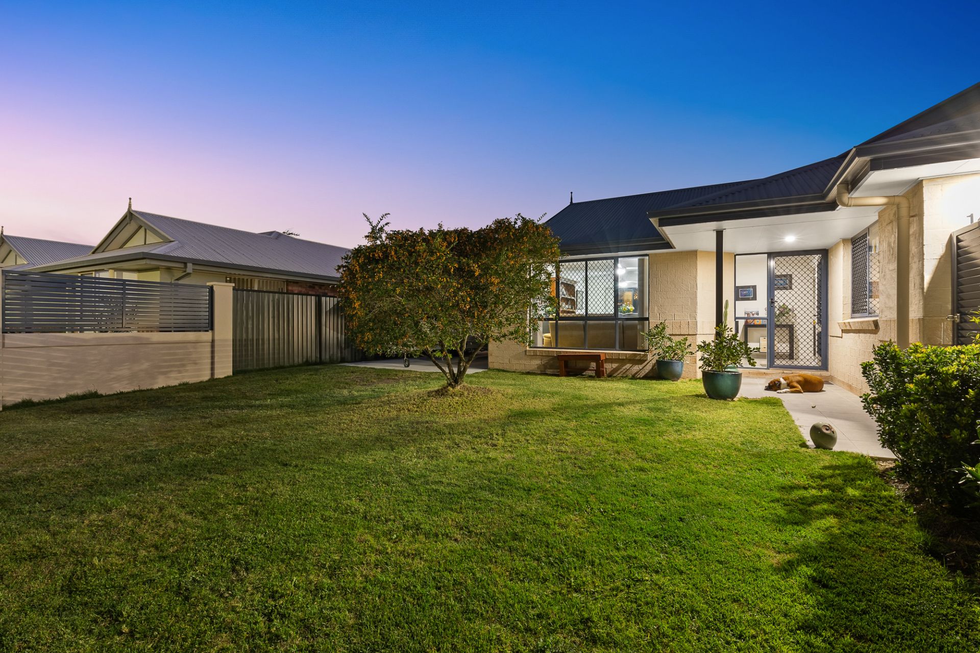 – A solid concrete front fence, coupled with a large aluminium sliding gate to access the concrete pad.