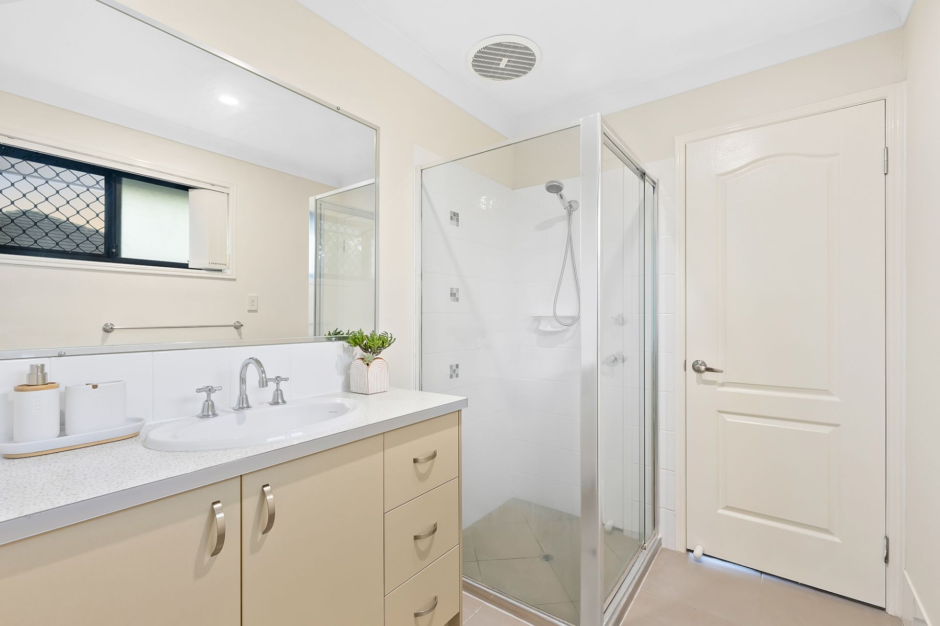 – Security screens and doors offer peace of mind, while a side timber deck and ceiling fans in rooms without air conditioning add comfort to living spaces.
