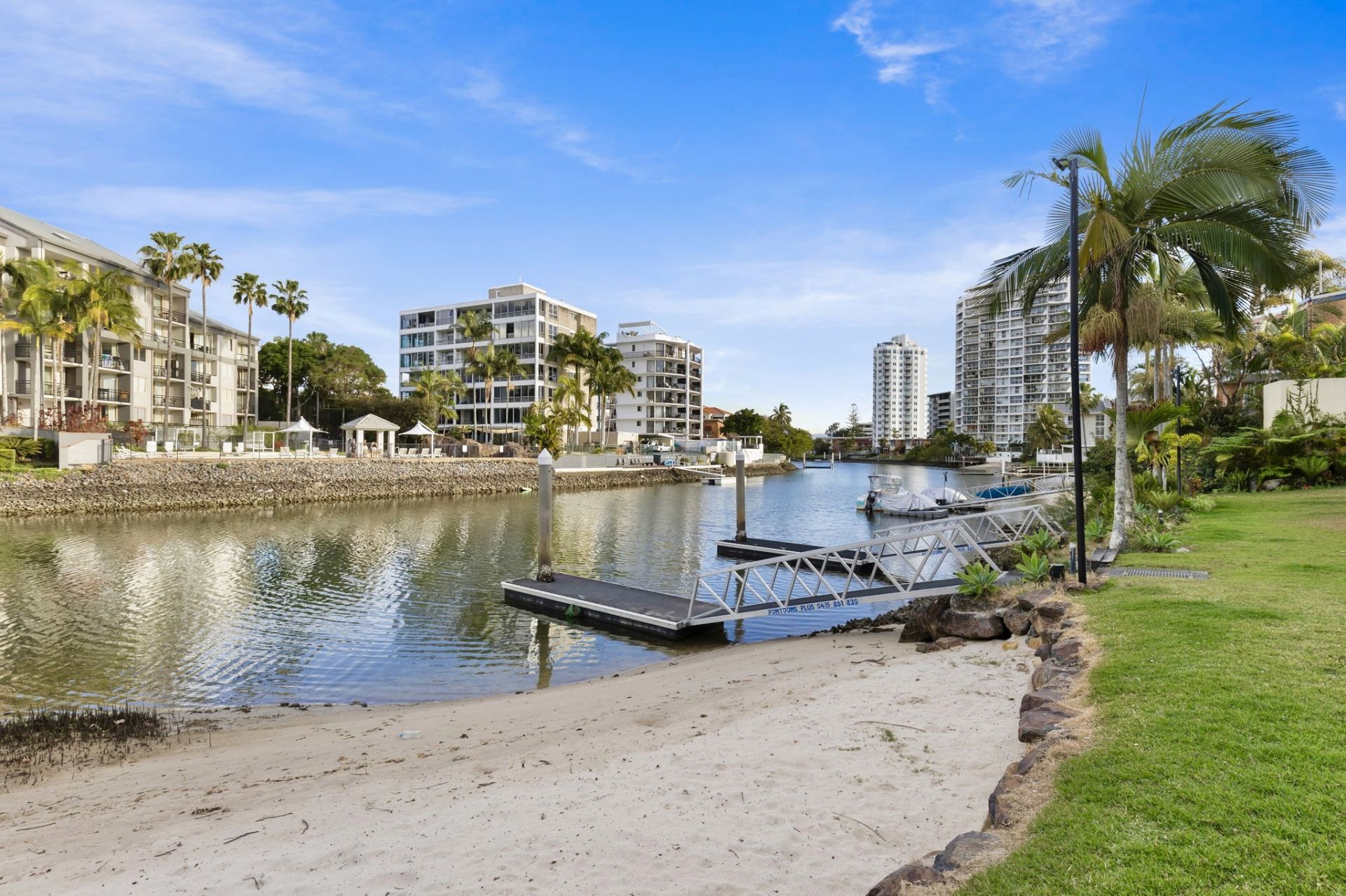 – Resort-style facilities – sparkling swimming pool, relaxing hot spa, BBQ area, private jetties, and secure gated entry surrounded by lush tropical gardens.