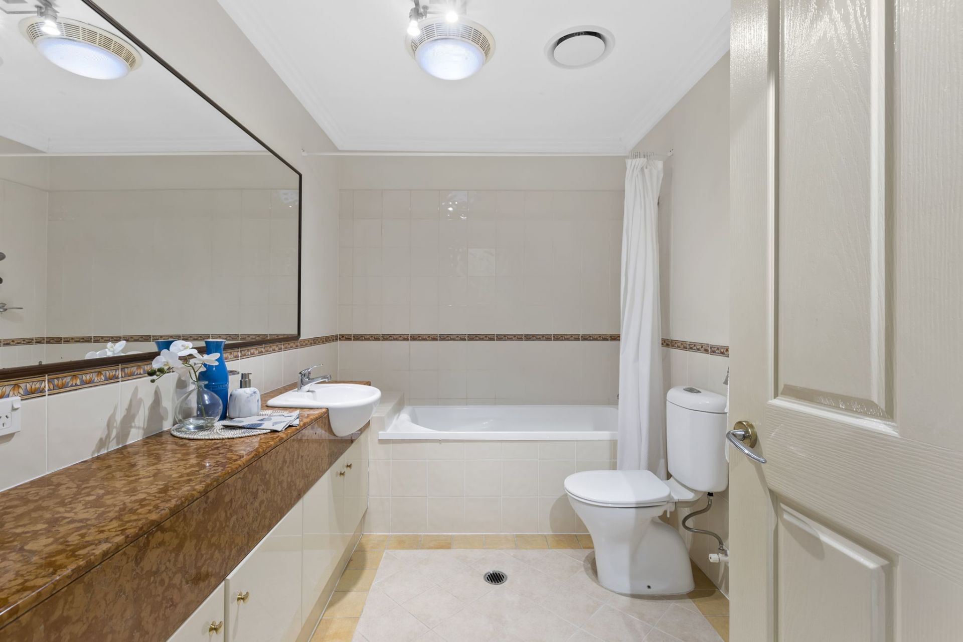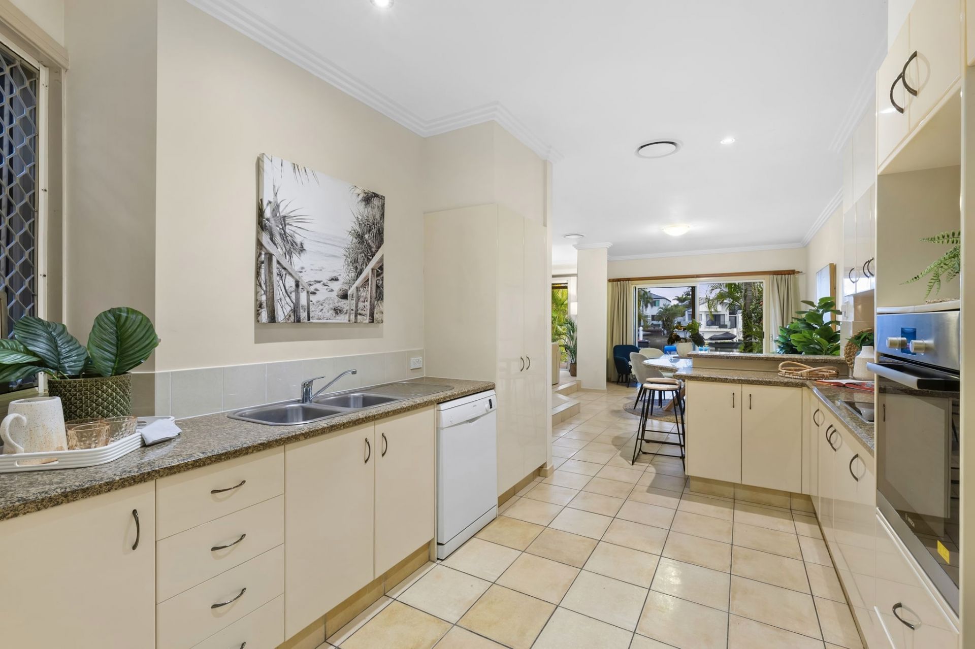 – Large entertainer’s kitchen with thick stone benchtops, quality appliances, breakfast bar and serene water outlook.