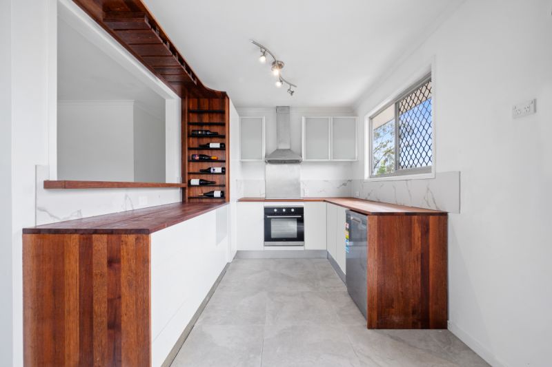 * Renovated kitchen with timber bench tops and ample storage