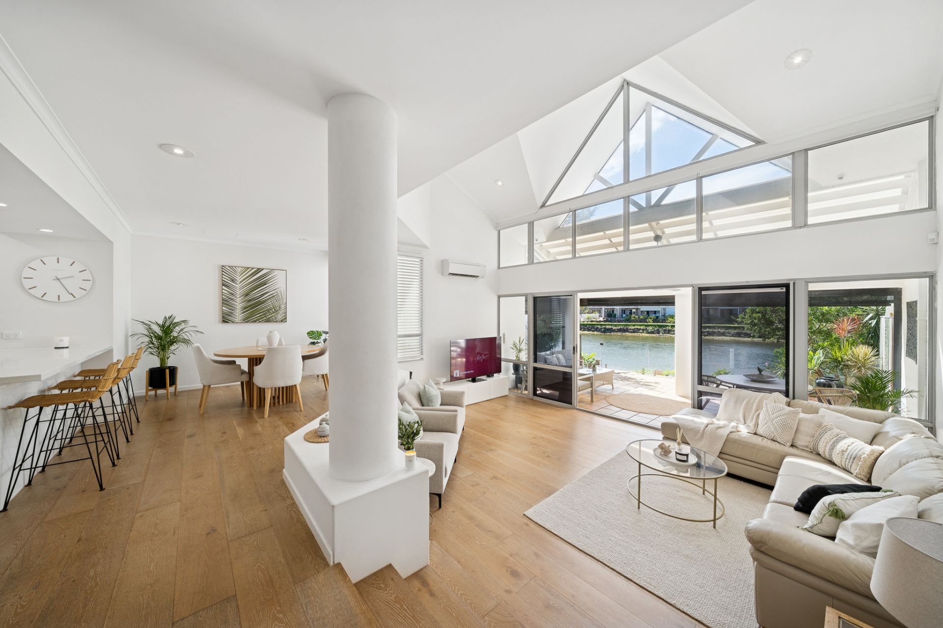 Please be sure to click on the video. This is your opportunity to secure this renovated waterfront townhouse within the tightly held Stage 1 enclave of Rhode Island Estate in Clear Island Waters. This expansive waterfront residence spans an impressive 311m² and boasts soaring cathedral ceilings, generous indoor-outdoor living, multiple private breakout zones and a versatile layout including a guest wing, multipurpose rumpus retreat and study. This coastal home delivers the space of a freestanding residence with the ease of low-maintenance living, allowing you time to enjoy the Gold Coast lifestyle, all within a secure estate.