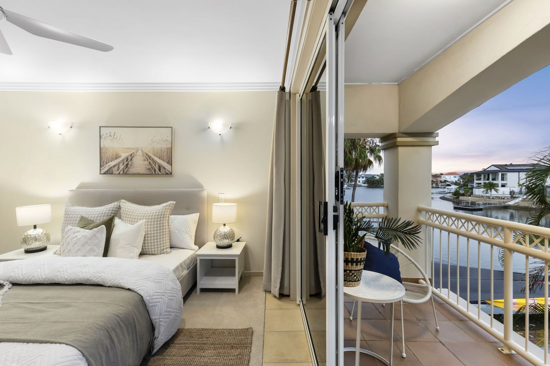 – 3 generous bedrooms with ceiling fans – 2 with breathtaking water views and balcony access.